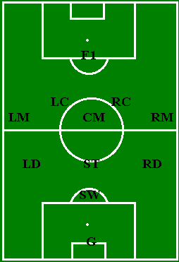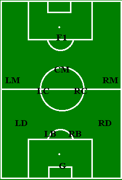 Left/Right Defenders (LD/RD): They mark the opponent's forwards. In the flat back version, or in more advanced teams these players are used to carry the ball up the outside with the midfielders, allowing more effective crossing.